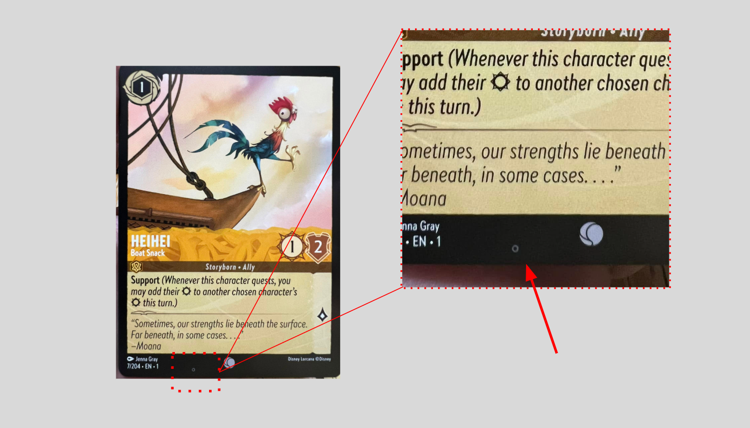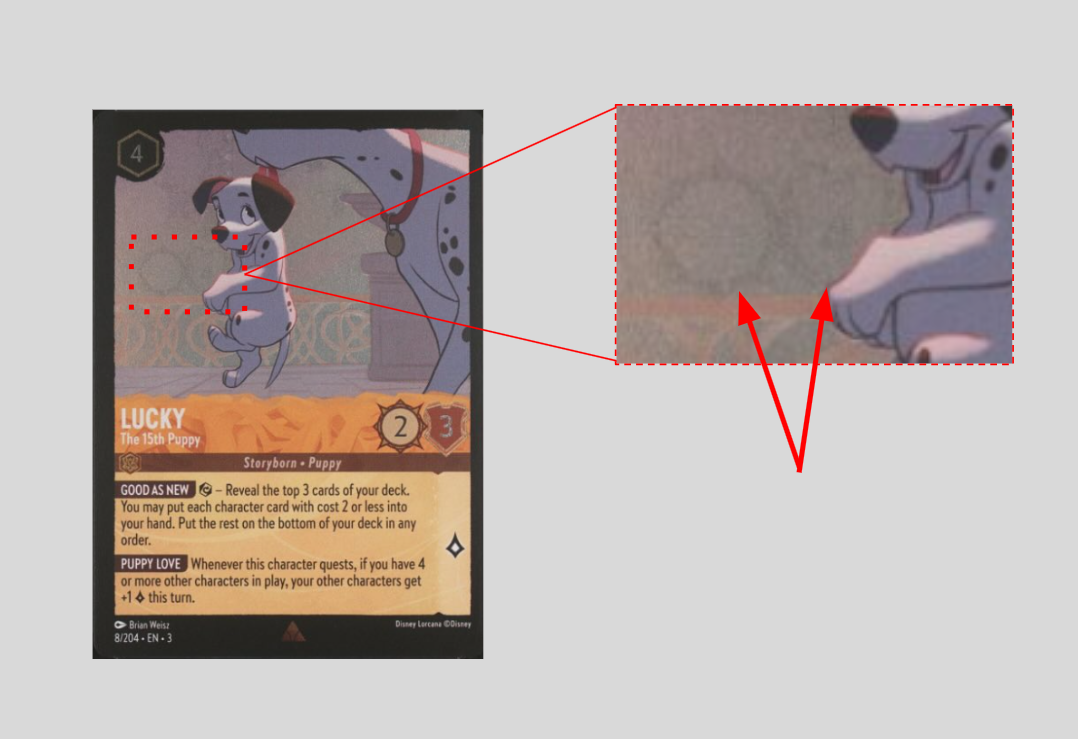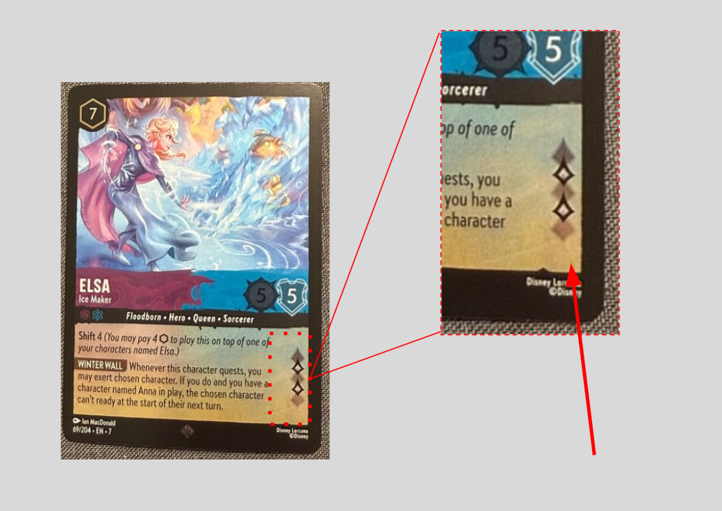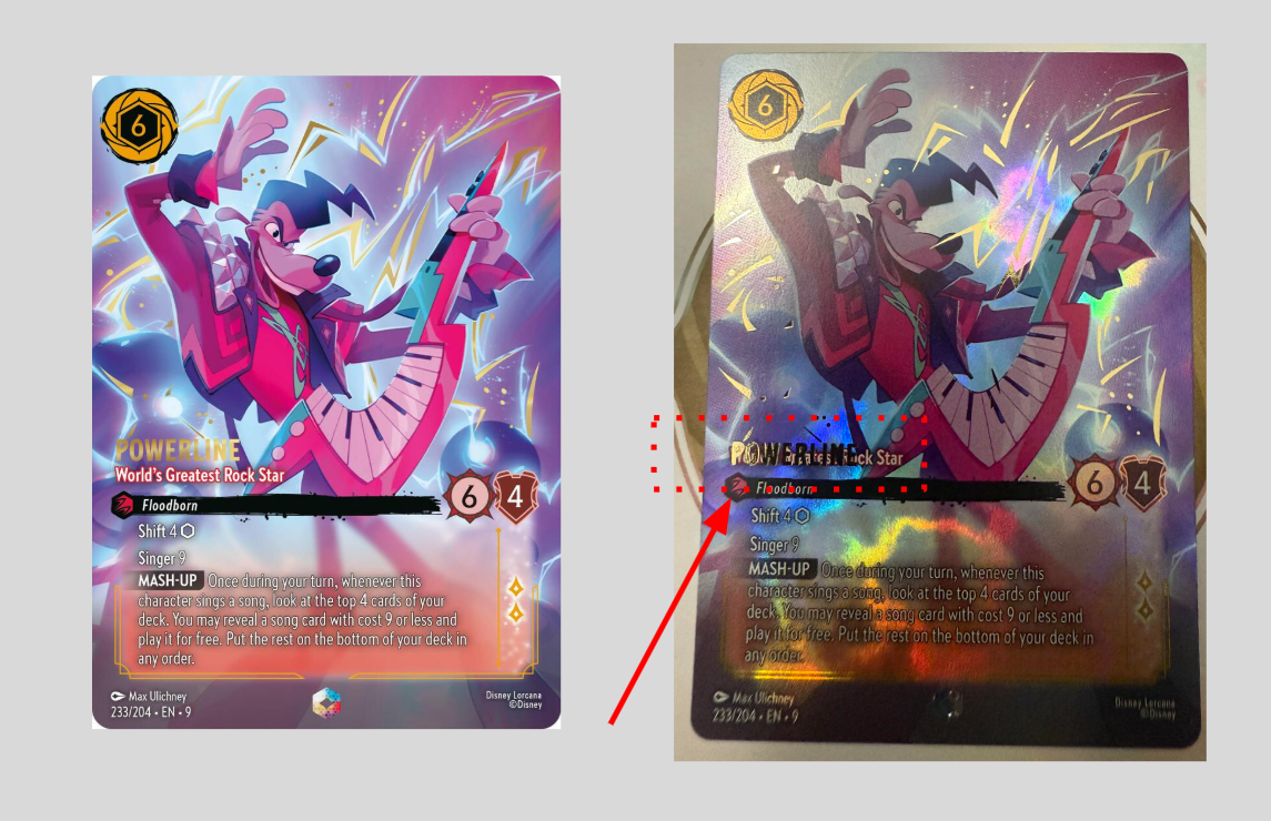 A "misprint” refers to a card with an unintentional printing error. While there are many types of errors, it’s common for collectors or those new to the community to use the colloquial term (used in ordinary or familiar conversation; not formal or literary.), misprints, to describe cards with errors. It’s bound to be that new errors come out as product ramps and Ravensburger begins testing new card types, printing processes, etc, so we’ll continue to update this resource when new ones appear.