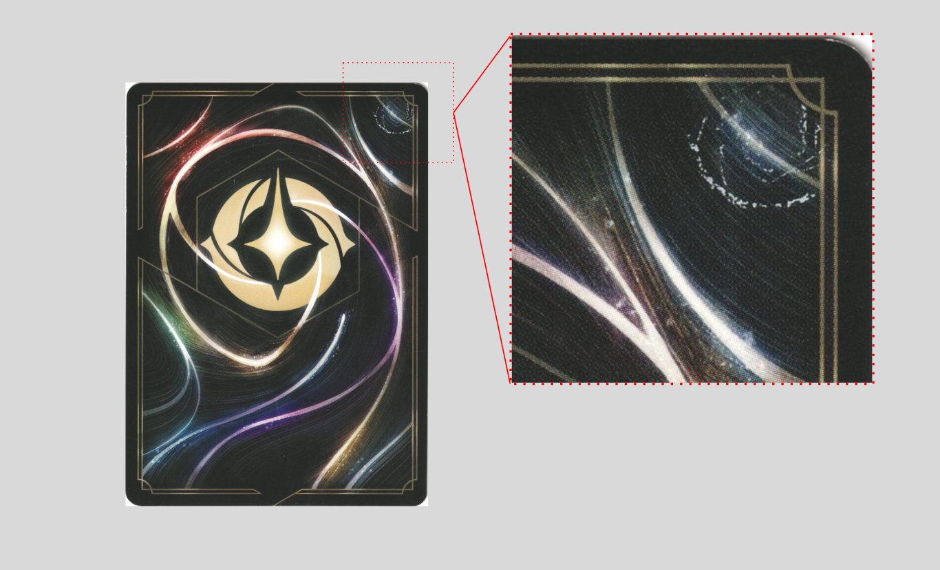 Enchanted card backs have a ‘gutter’ which is how we know it’s not the correct back.